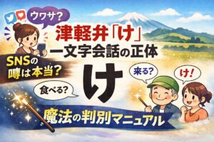 「TikTokで流れてきた、青森の人が『け』だけで会話している動画……あれって、さすがにネタですよね?」 東京で働く方のように、SNSで津軽弁の「一文字会話」を目にして、衝撃と疑念を抱いた方は多いのではないでしょうか。 たった一音で意思疎通ができるなんて、にわかには信じがたい話です。 結論から言いましょう。 あの動画、100%真実です。 はじめまして。 青森文化ライターの工藤誠です。 私は15年以 … 続きを読む SNSの噂は本当?津軽弁「け」一文字会話の正体と、魔法の判別マニュアル