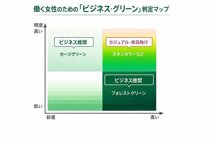 この記事を読み終える頃には、明日その緑の服を着て、自信を持って出社できるようになっているはずです。