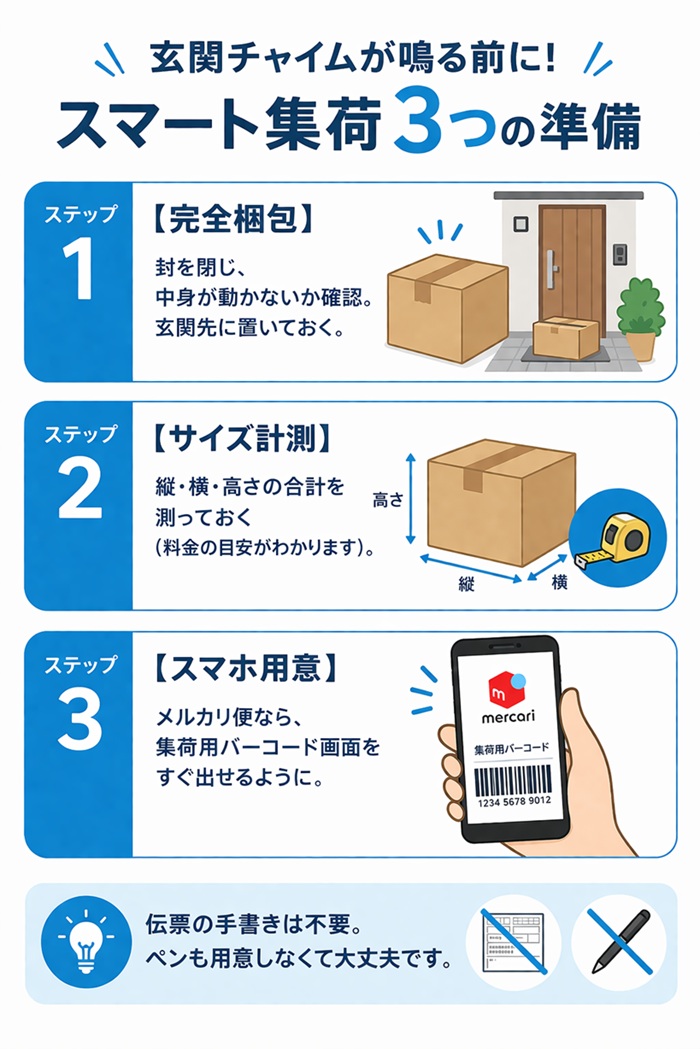 【結論】: 集荷依頼は「荷物が梱包できた瞬間」に、スマホからWeb予約で済ませるのが鉄則です。