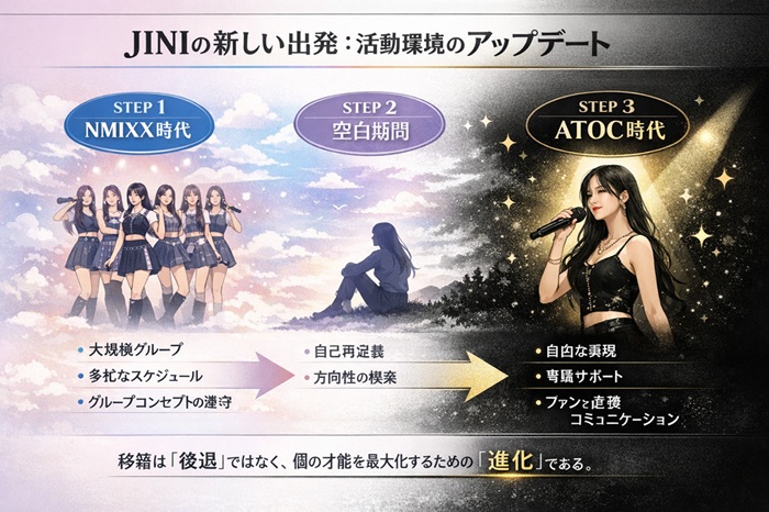 それは決して「終わり」ではなく、NMIXXのジニから、ソロアーティストJINIへと自分自身を再定義するための、静かですが力強い準備期間でした。