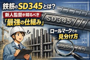 [著者情報] 執筆者:棟方 誠(むなかた まこと) 肩書き: 1級建築施工管理技士 / 構造設計一級建築士 専門領域: RC造建築物の施工管理・構造設計(実務経験25年) メッセージ: 現場で「SD345」と聞いて戸惑うのは、あなたがプロとして責任を感じている証拠です。私も新人の頃は図面と現物の違いに悩みましたが、コツを掴めば鉄筋は「目」で判別できます。教科書にはない現場の知恵を伝授します。 現場 … 続きを読む 鉄筋のSD345とは?新人監督が知るべき「最強の仕組み」とロールマークでの見分け方