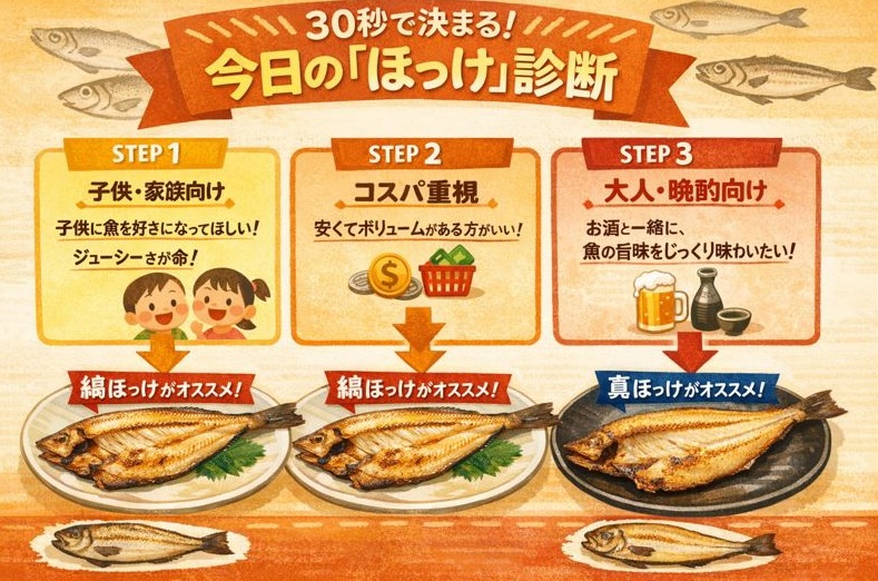 【30秒で解決】今のあなたに最適なほっけが決まる「魔法の判定チャート」