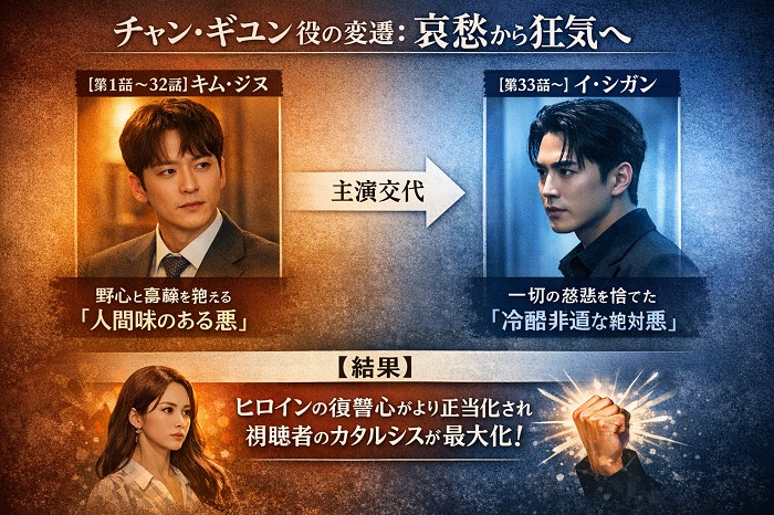 この主演交代は、物語のトーンを「哀愁」から「狂気」へと劇的に変化させる、結果としてポジティブな転換点となりました。