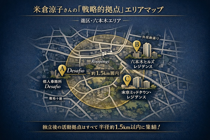 事務所は港区に位置しており、独立後の彼女が「職住近接」による時間効率の最大化を狙っていることは間違いありません。