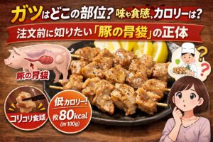 居酒屋の壁に貼られた「ガツ刺し」や「ガツ芯」という文字を見て、「これ、どこの肉だろう?」とスマホを取り出したあなた、正解へようこそ。 結論からお伝えすると、ガツの正体は「豚の胃袋」です。 「内臓系は臭みが心配」「脂っこいのはちょっと……」と不安に思う必要はありません。 豚の胃袋であるガツは、ホルモンの中でもトップクラスにクセがなく、驚くほどヘルシーな部位なのです。 この記事を読み終える30秒後には … 続きを読む ガツはどこの部位?味や食感、カロリーは?注文前に知りたい「豚の胃袋」の正体