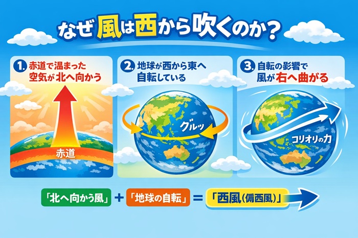 【図解】なぜ「西」から吹く?カギを握る「コリオリの力」を世界一わかりやすく解説