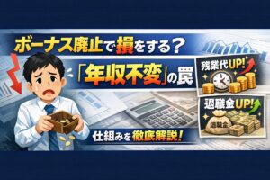 「年収は変わらないから安心してください」 会社の説明会でそう言われて、素直に頷ける人は少ないでしょう。 私も数多くの現場で、不安に揺れる社員の方々の目を見てきました。 実は、ボーナス廃止は単なる「配分の変更」ではありません。 あなたの残業代、将来の退職金、そして毎月の手取り額を根本から変える「マネーイベント」なのです。 感情論ではなく、数字で真実を紐解いていきましょう。 この記事では、制度変更の「 … 続きを読む ボーナス廃止で損をする?「年収不変」の罠と残業代・退職金が増える仕組みを徹底解説